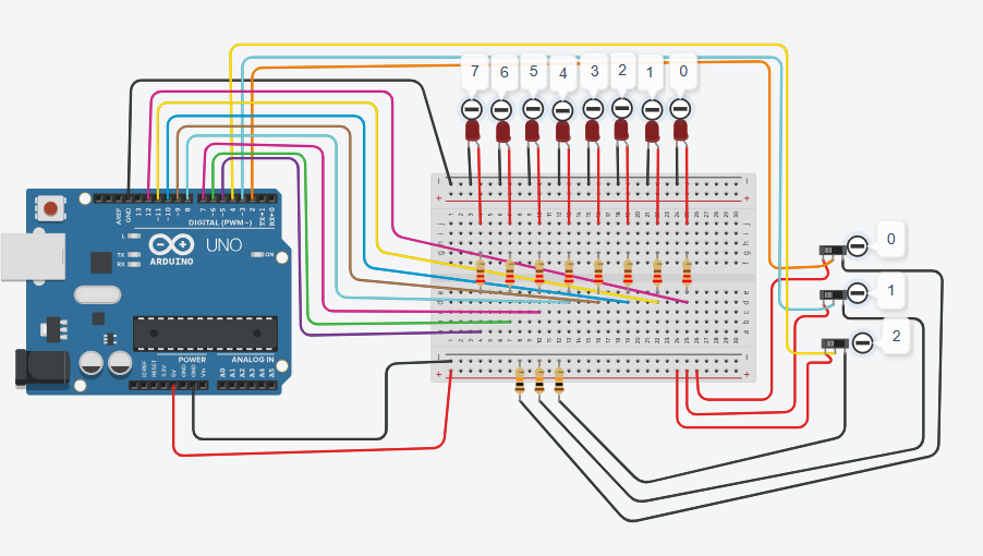 // Üç buton ile 2^3 ten toplam 8 butonu kontrol edebiliyoruz.